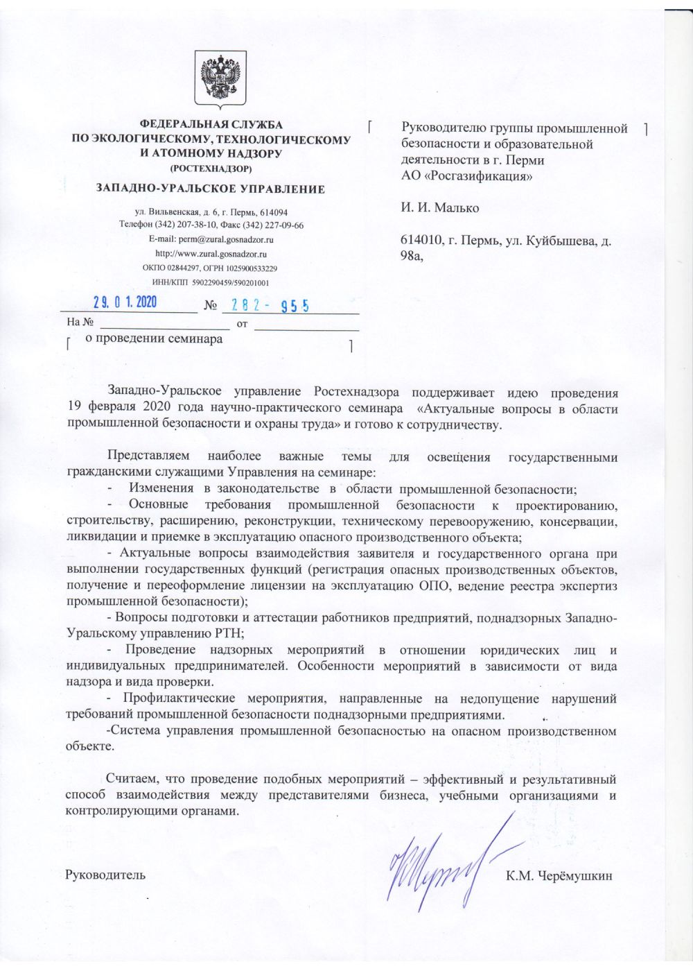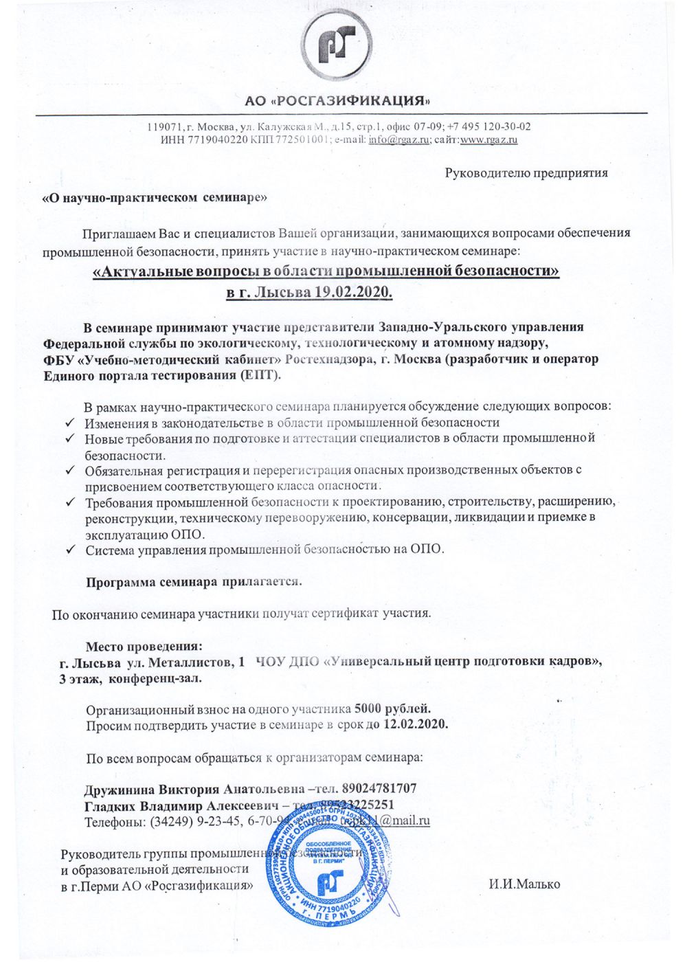 В связи с многочисленными вопросами со стороны предприятий и организаций по изменениям законодательства в области промышленной безопасности проводится научно-практический семинар «Актуальные вопросы в области промышленной безопасности» 19.02.2020.
